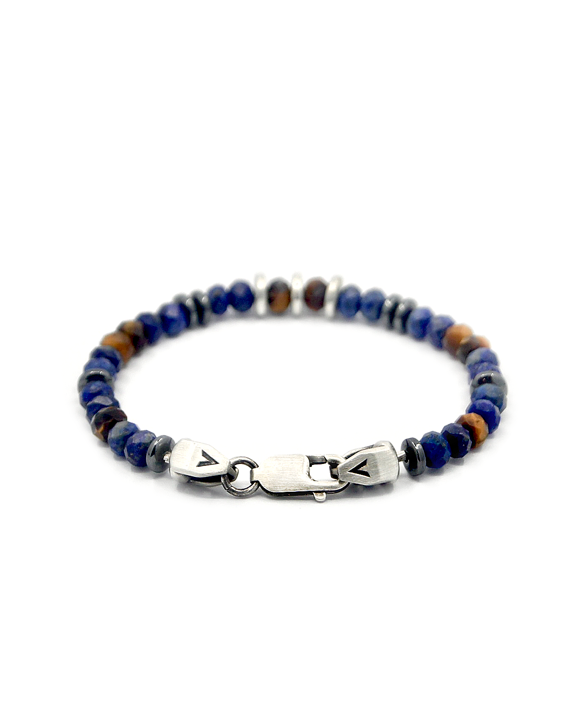 The Pulse Bracelet - Assembled with Lapis Lazuli and Tiger's Eye, this piece is meant to aid its owner in keeping a steady heart rate under adversity by bringing forward strength, courage, wisdom, and confidence.